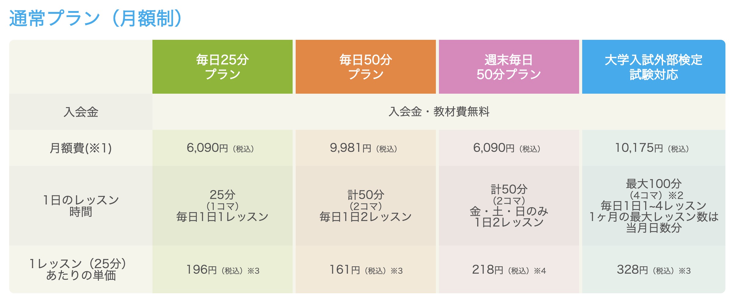 | 1レッスンの料金 | 105円 | 158円 | 158円 |