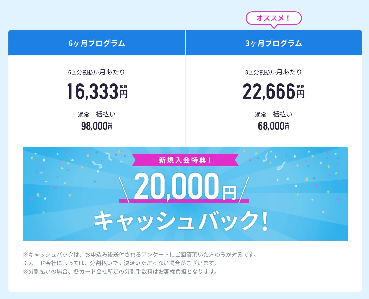| 12ヶ月分パック | 6ヶ月分パック | 月払い | |