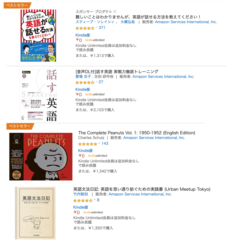 Kindle Unlimitedの中にはもちろん参考書もありますし、洋書も取り揃えられています。
