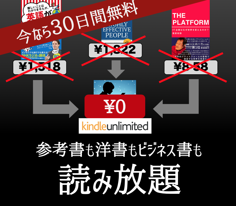 30日間の無料期間があるのでまずは今すぐKindle Unlimitedに加入するのがおすすめ。