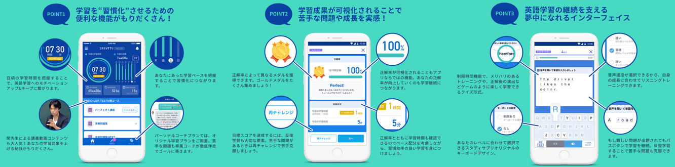 アプリでの発音学習は、これらの問題を全て解決。正しい発音を効率よく身につけることができます。