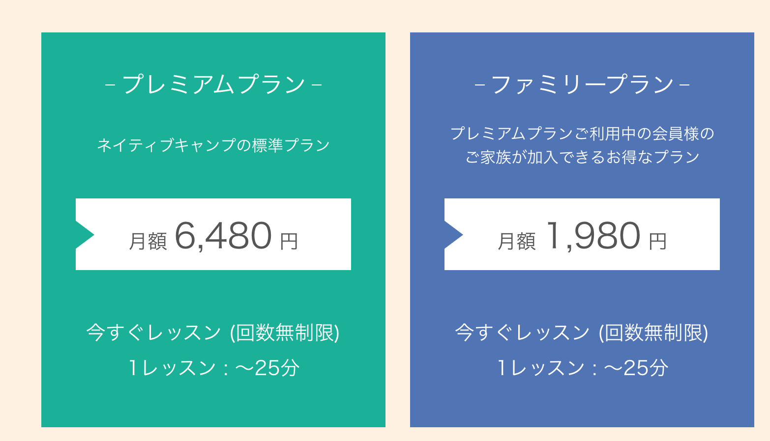 ネイティブキャンプは主に「プレミアムプラン」と「ファミリープラン」の2つのプランが存在します。