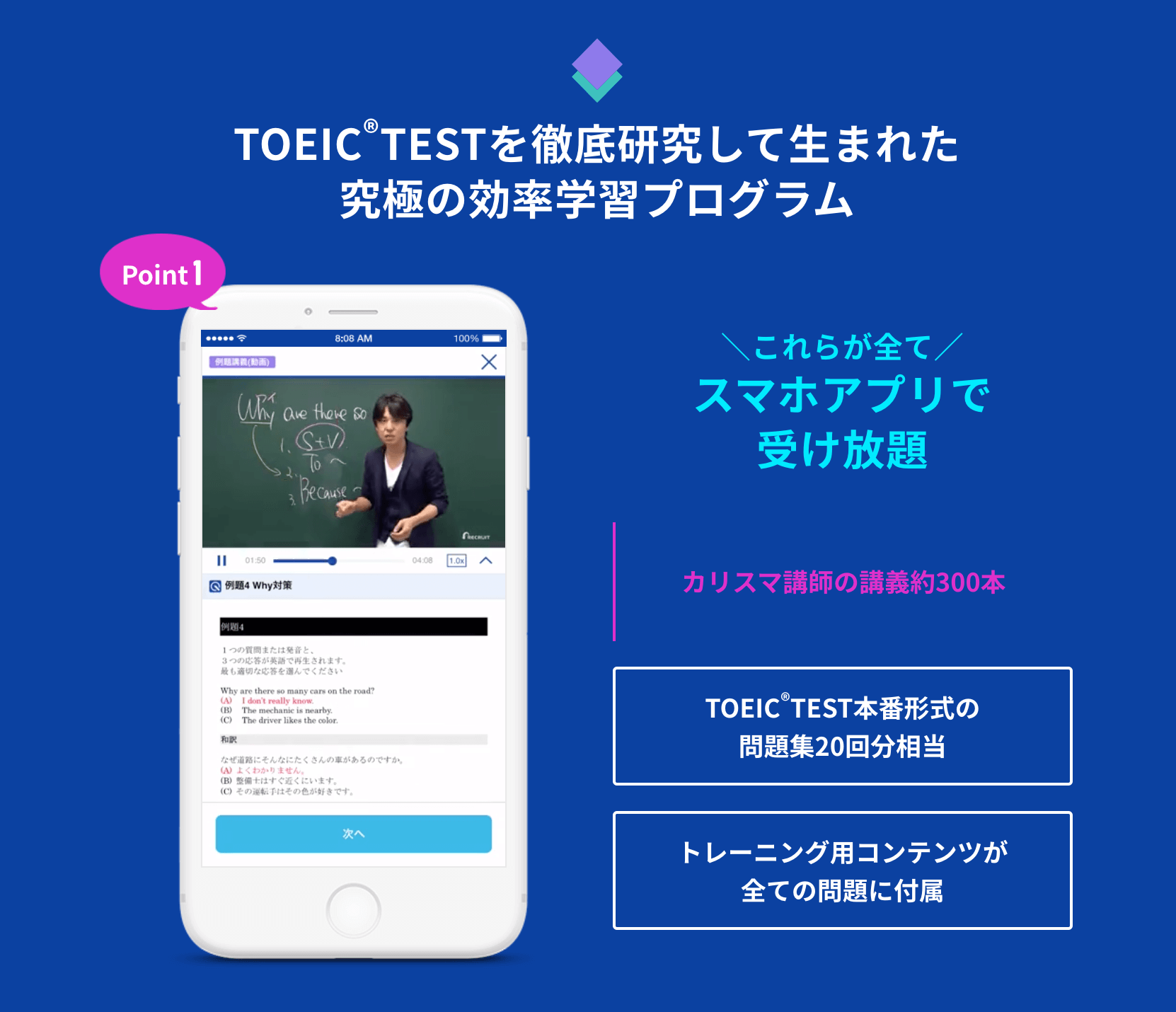 TOEICを徹底的に研究して作られたプログラムはTOEICのスコアアップに非常に効果的!