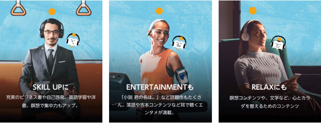 もちろん他の本を利用することも可能でビジネス書や小説などお好きな本を耳から聴くことができます。