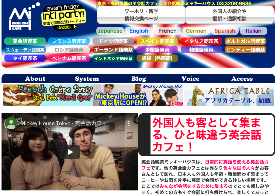 英会話喫茶ミッキーマウスは、日常的に英語を使うことのできる英会話カフェです。