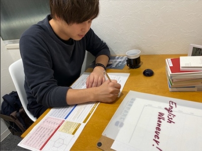 無料体験レッスンということで、まず最初に実力チェックがありました。中学レベルの文法(英作文)などを解いていきます。
