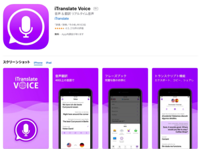 「iTranslate Voice」はアプリに話かけて翻訳してくれるiPhone用アプリで多言語に対応してます。