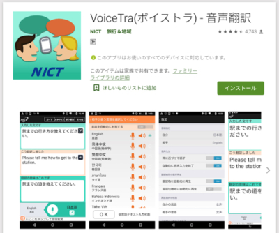 「VoiceTra(ボイストラ) - 音声翻訳」はiOS版でも高い評価を得ている翻訳アプリです。