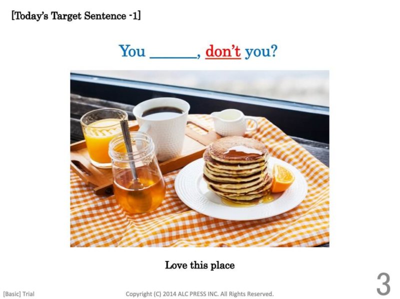 その上で、レッスンで習う表現、今回だったら「isn't it?」をはじめとした付加疑問文のフレーズを使いつつ会話をしました。