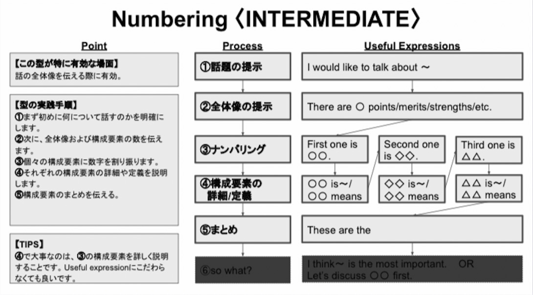 それにかなりPrep話法とかナンバリング話法とか論理的な話し方にも慣れてきたようですね。