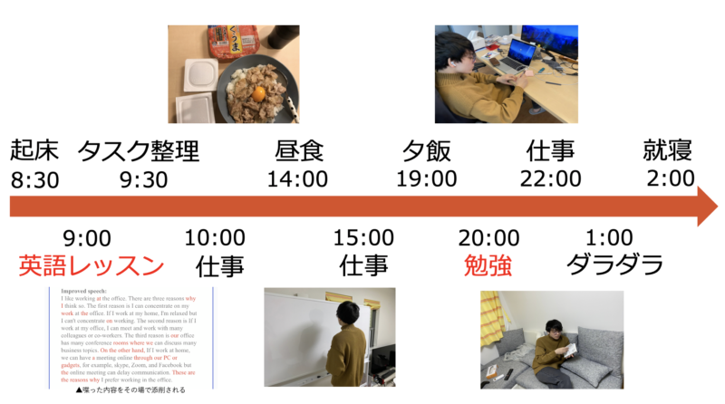 なので、英語の勉強時間を2時間確保するために以下の点を意識。
