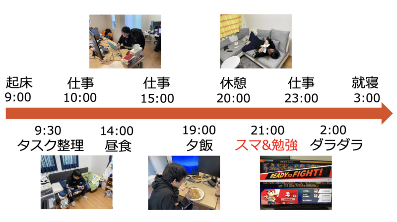 夜はいつもなら麻雀するんだけど、コロナでみんなリモートで3人しかいないので中止……。あとはいつもならみんなで銭湯行くんだけど、コロナだからそれも中止……