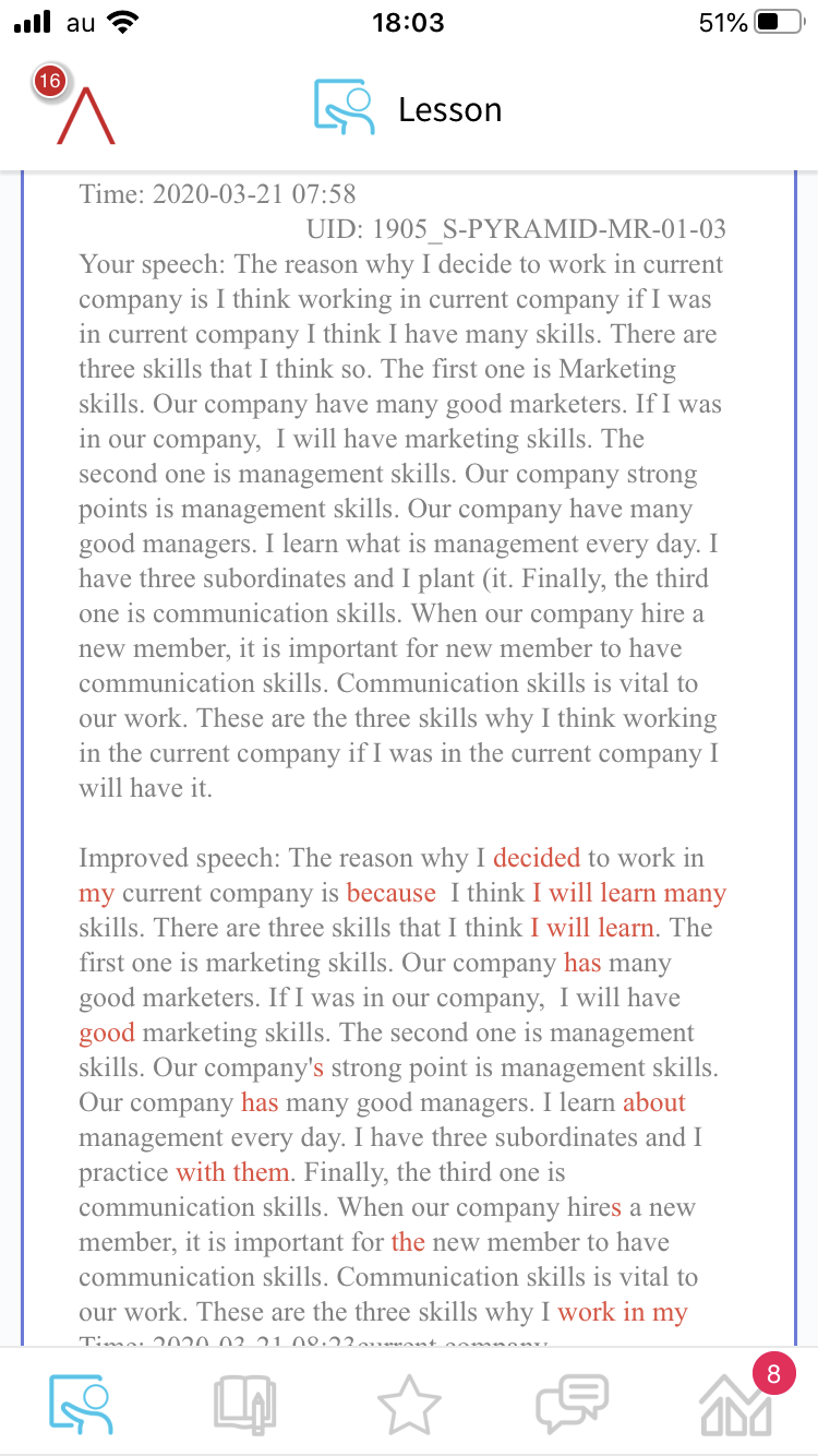 英語レッスンも日本語講師とのレッスンもどっちも入れているのはそこのアメとムチの使い分けで学習効率を上げてるのかもね。