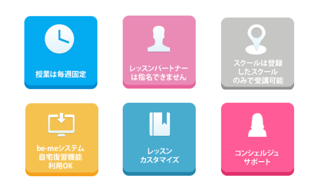 レッスンパートナーが選べなかったり、授業時間が固定などの制限があります。