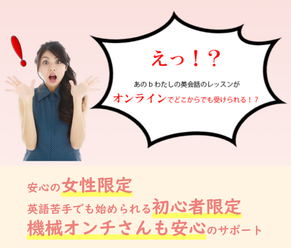 bわたしの英会話の最大の特徴は、「女性」の「初心者」に特化した英会話スクールであるということ。