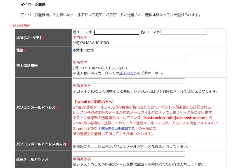 お申し込みページがでてきますので、必要情報を入力して確認しましょう。
