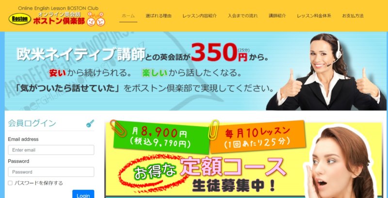 数々のオンライン英会話サービスの中でも、ネイティブ講師をメインとしているボストン倶楽部。