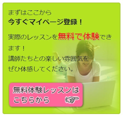 公式ページ内にある「無料体験レッスンはこちら」をクリックしましょう!
