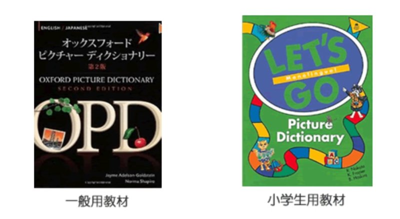 子ども向けには「LET'S GO Picture Dictionary」を使用しています。