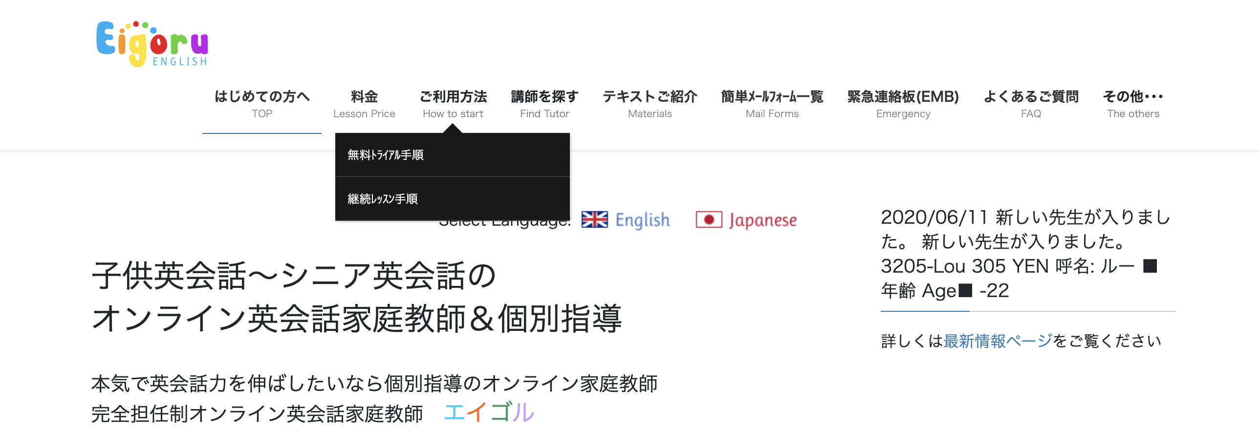 他のオンライン英会話を2社利用した後、現在(2019年10月)エイゴルを利用しています。8ヶ月ほど経ちます。