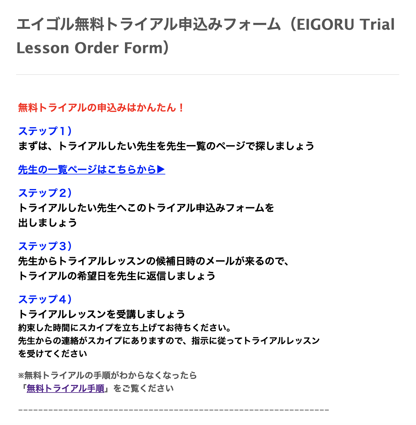 トライアルしたい先生へトライアル申込みフォームを出しましょう