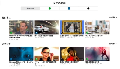 動画はレベル別でまとめられており、様々な英語レベルの人に対応している点が魅力です。