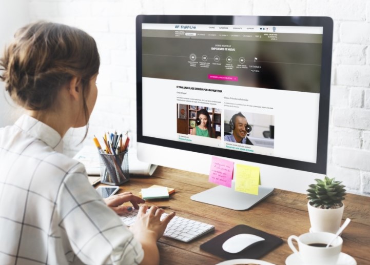 EFイングリッシュライブでは、オンライン英会話教材とオンラインレッスンを組み合わせて英語を学習していくスクール。