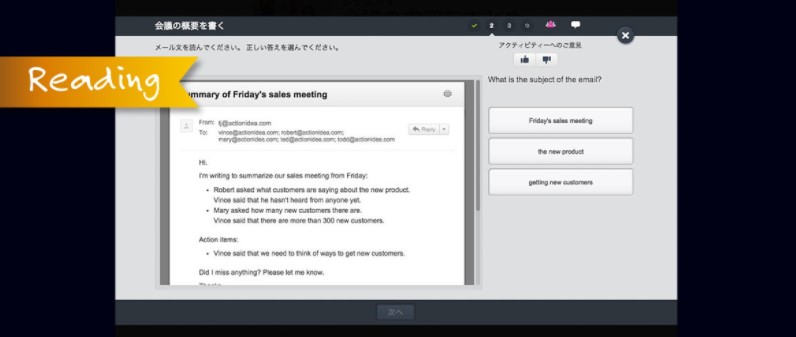 教材である動画は本格的で、新しい英単語や文法をドラマ仕立てで勉強することができ、実際の会話のテンポなどもつかむことができます。