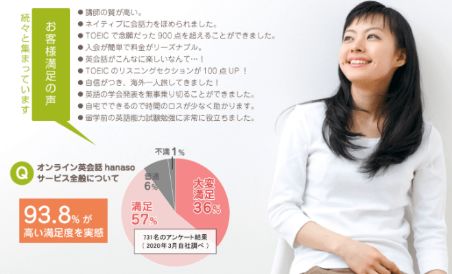 hanasoはオンライン英会話の中でもバランス良く評価されている印象のサービスです。