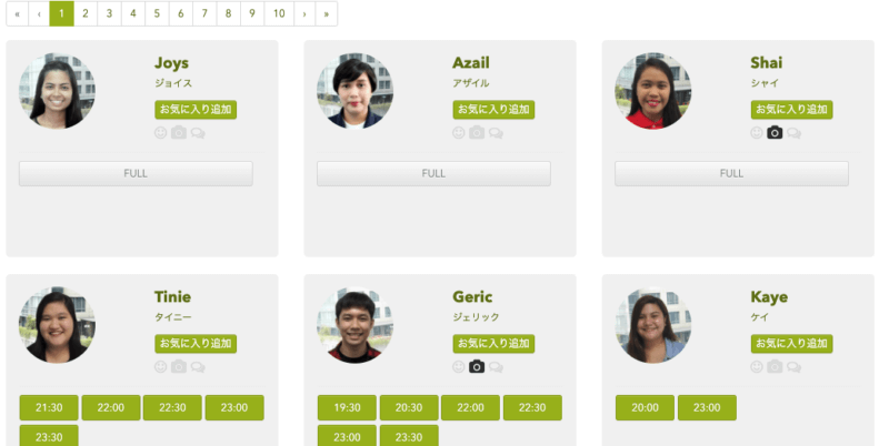 このような感じで候補の講師が表示されていくので、後は自分の条件で検索していくだけです。