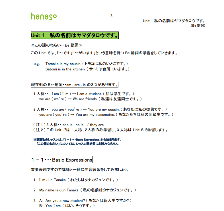 このテキストを使う際には、レッスンの前に練習ステージでhanasoメソッドとテキストの使い方を把握しておきましょう。
