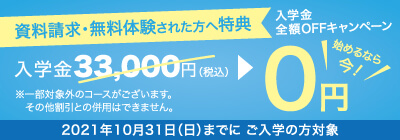 10月30日までにWebで申し込めば、入会金33,000円がOFFになります。