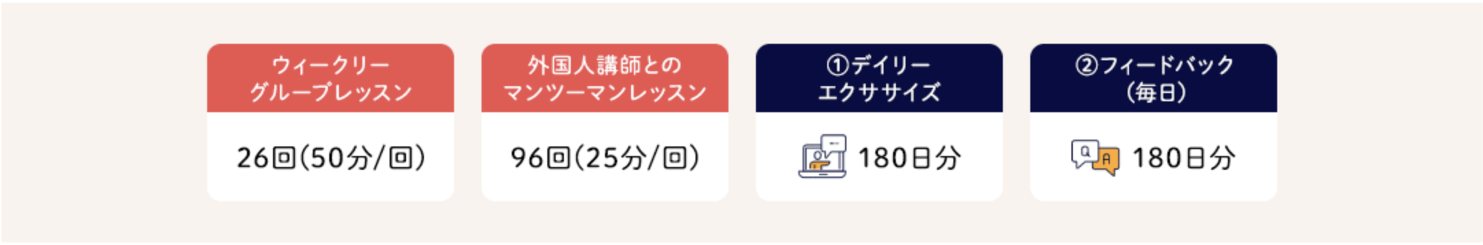こちらは、少人数で行うグループレッスンにより、毎日の学習で身につけたフレーズや会話表現を使えるようにするアウトプットの場です。
