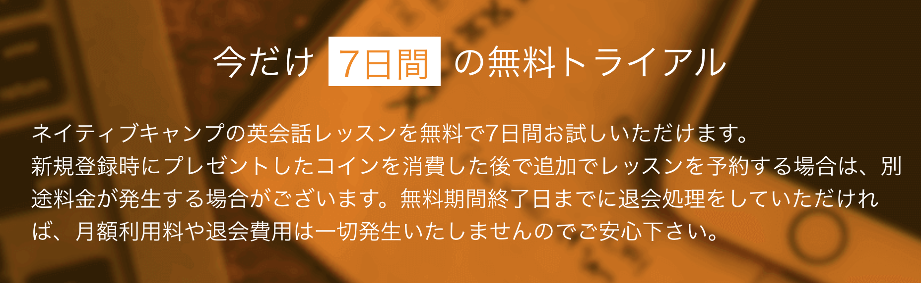 ネイティブキャンプでは7日間の無料トライアルがあるので、気になった方はそこから始めてみましょう!