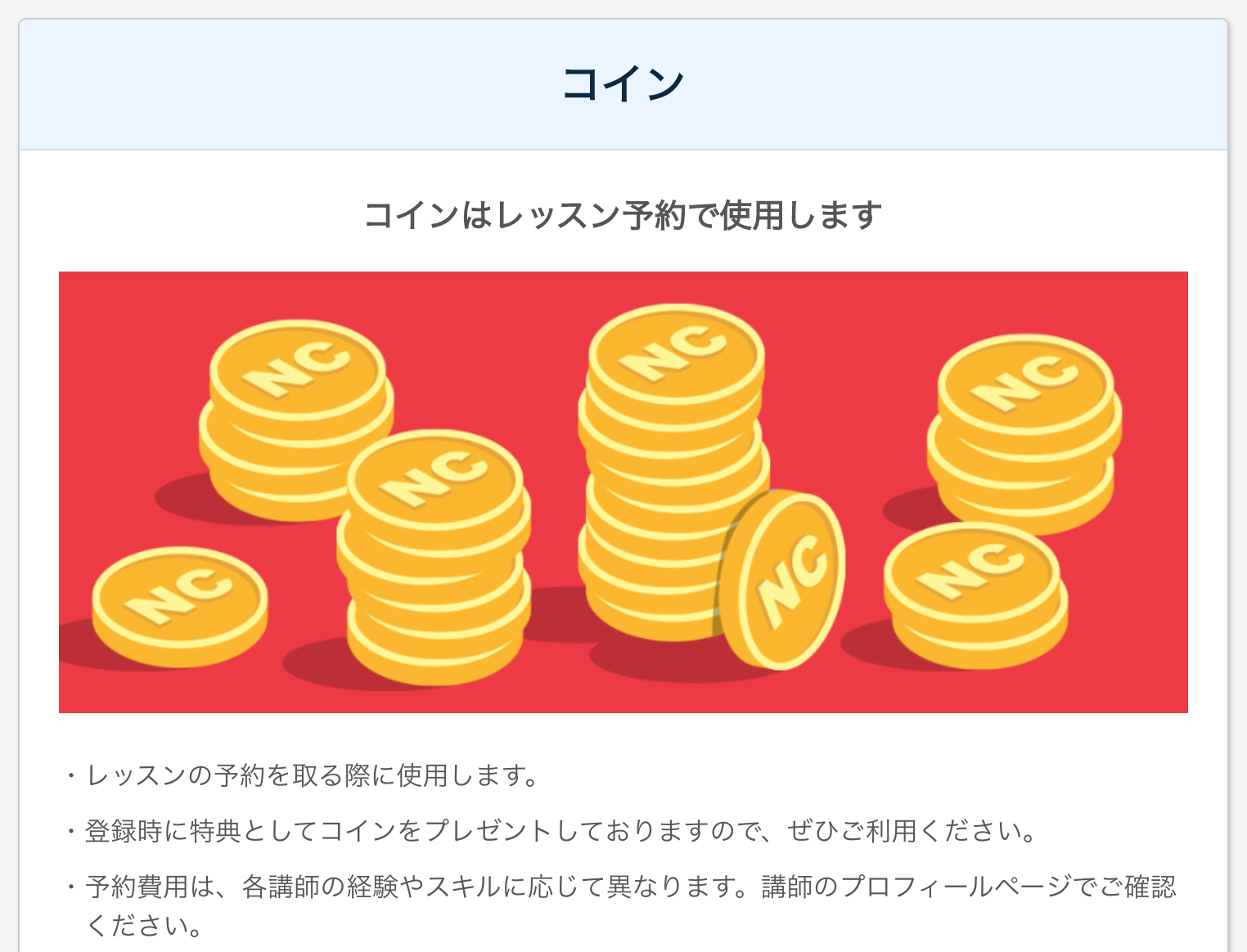 ネイティブキャンプではコインを使うことで、レッスンの予約をすることができます。