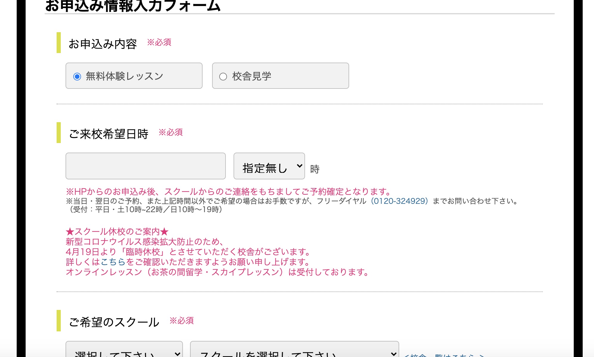 また、無料体験レッスンについても通常通り受け付けています。