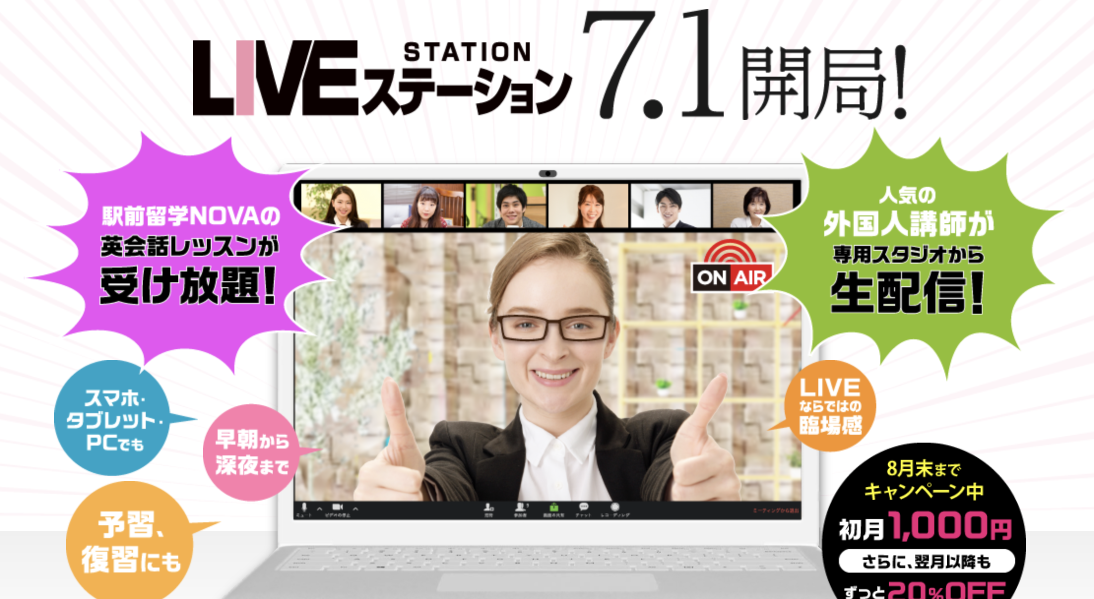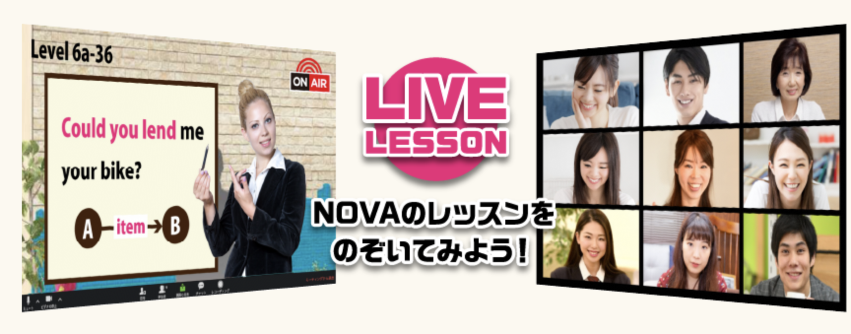 駅前留学NOVAの人気講師が専用スタジオからレッスンをLIVE配信。