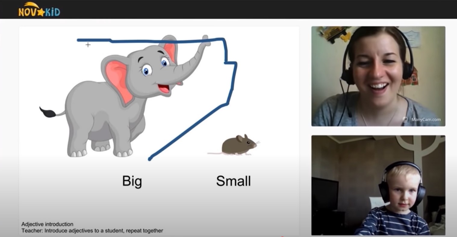 Novakidのレッスンでは、このようにスクリーンにラインを引いたりといったアクティビティがあります。