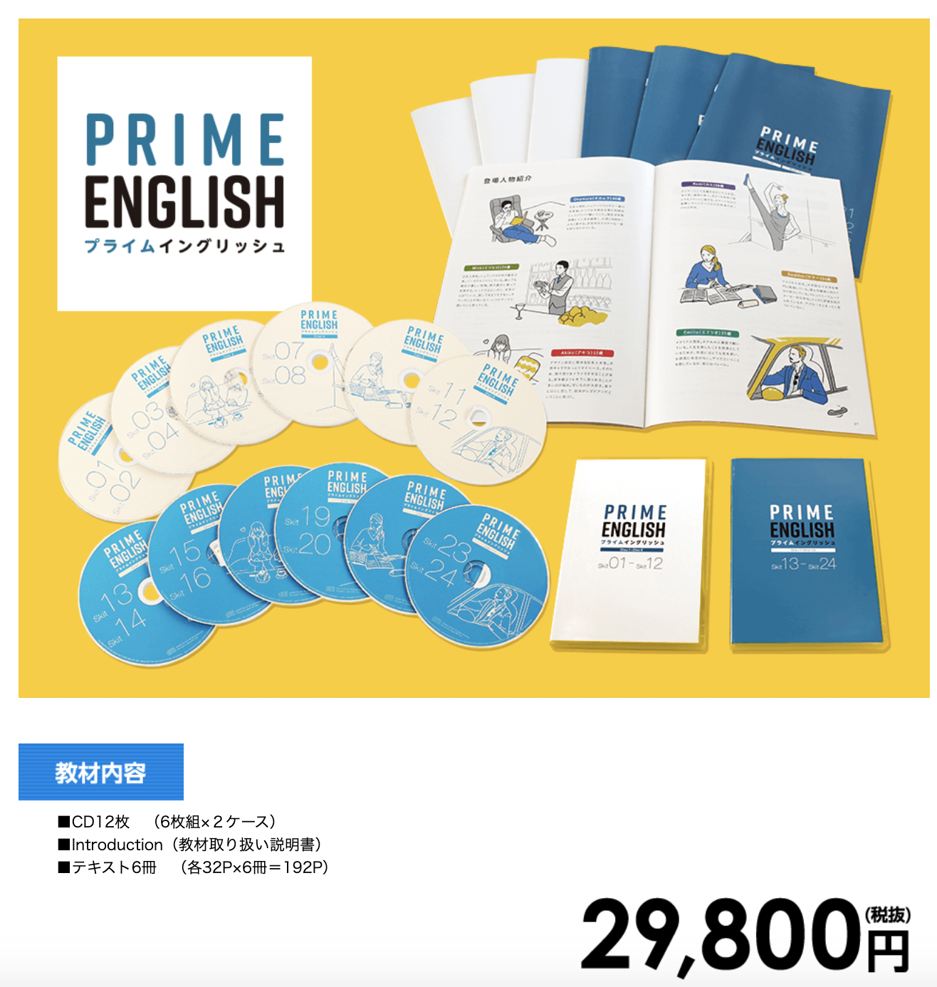 プライムイングリッシュは6ヶ月でリスニング・スピーキングを飛躍的に向上させる、音声に特化した英語教材。