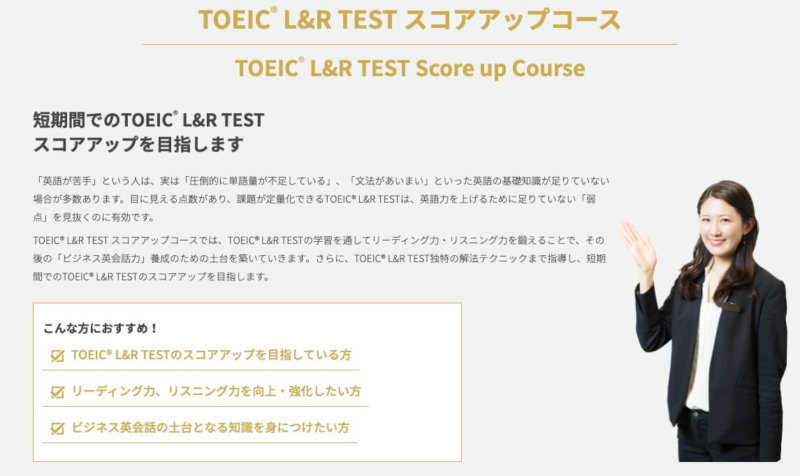 TOEICスコアアップコースは、ライザップイングリッシュの指導をTOEICのスコアアップに向けたプラン。