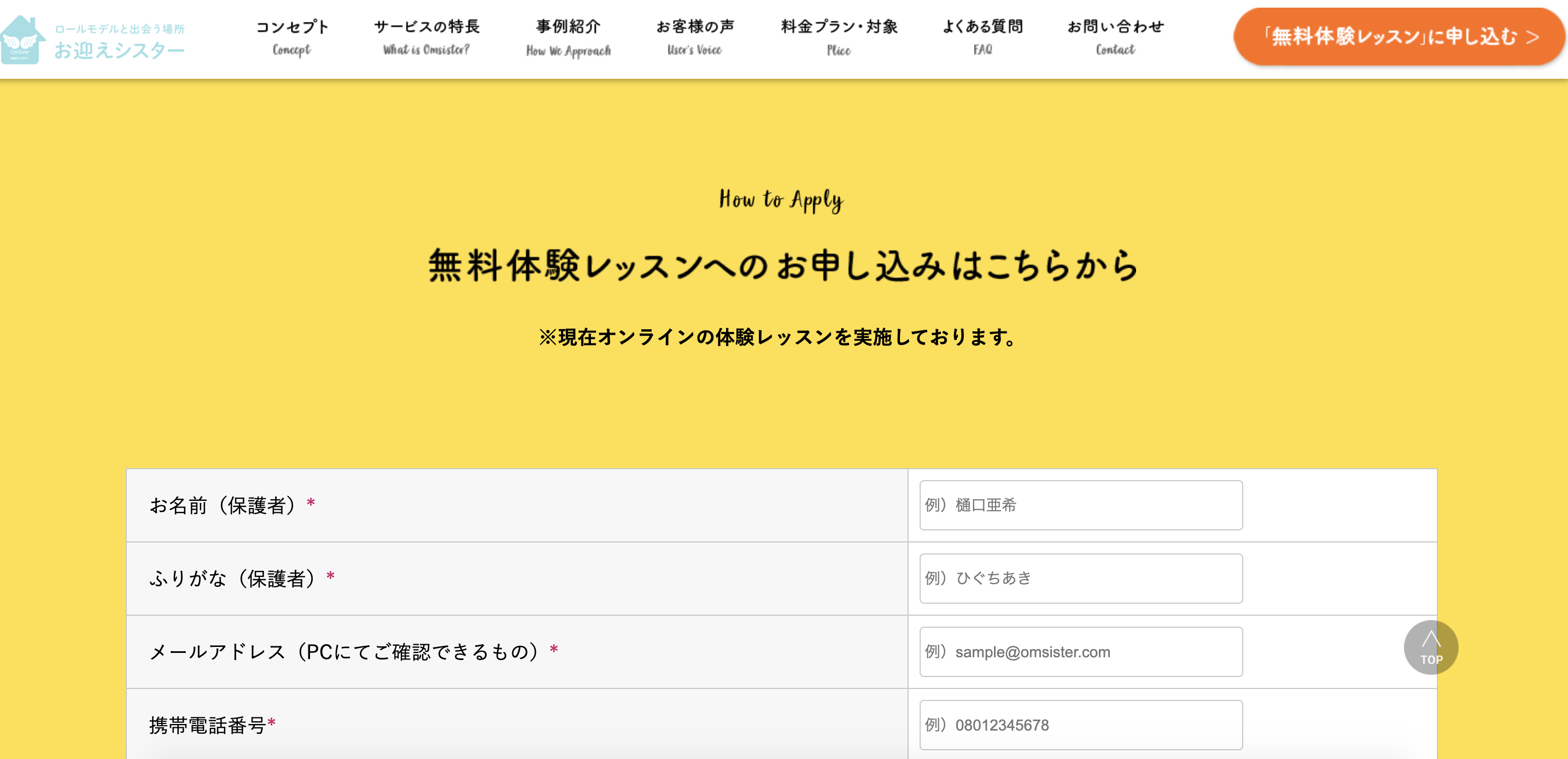 まずは公式サイトにアクセスし、無料体験レッスンに申し込むをクリックします。