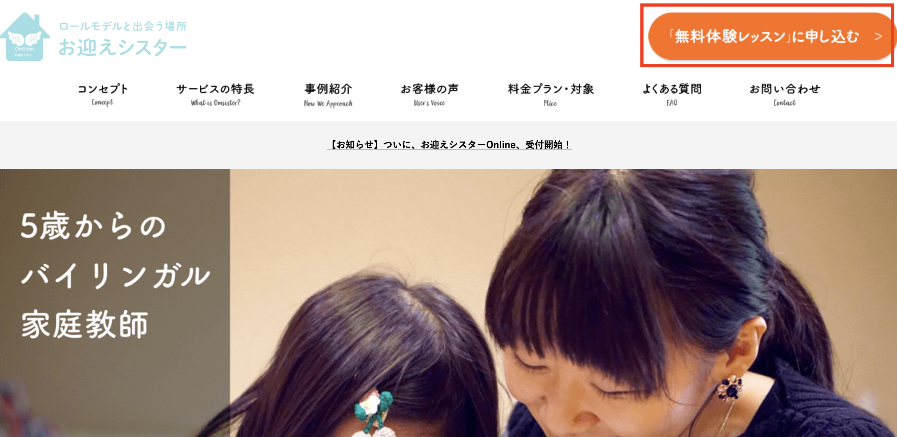 自宅送迎サービスと英会話レッスンが組み合わさった英会話サービス、お迎えシスター。