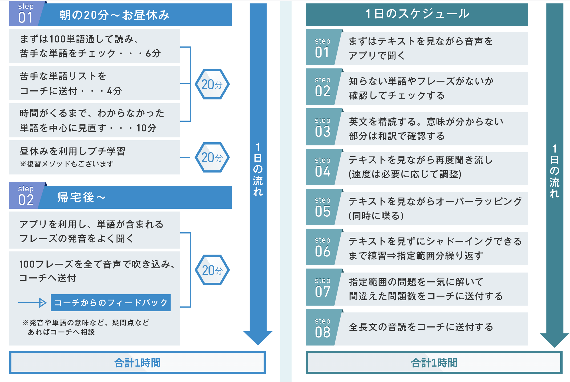 毎日レッスン前かレッスン後に継続的に英語を勉強する