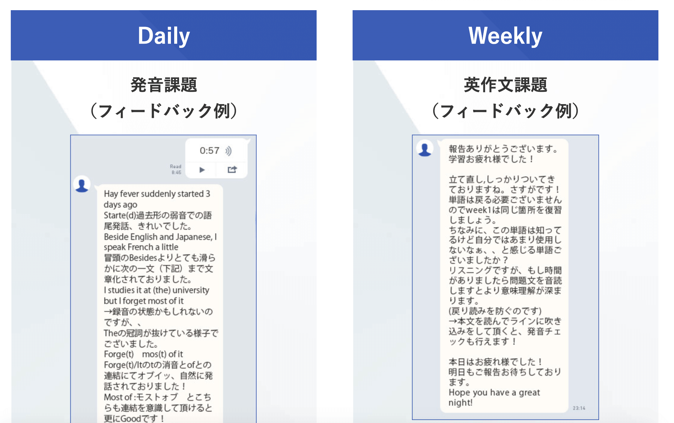 もちろん他の時間に英語を勉強するのでも問題ありませんが、レッスン前かレッスン後に勉強をすると決めていると習慣化して継続が容易になるので非常におすすめです。