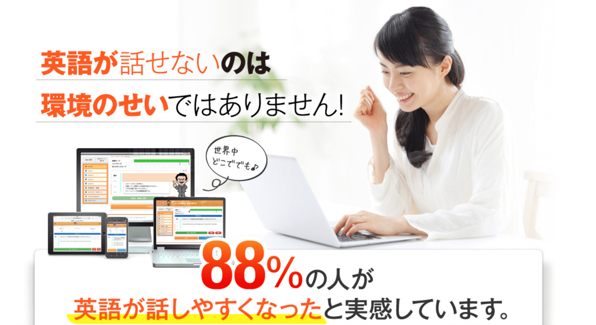 YouCanSpeakはパソコンだけでなく、スマホやタブレットでの学習が可能なオンライン教材。