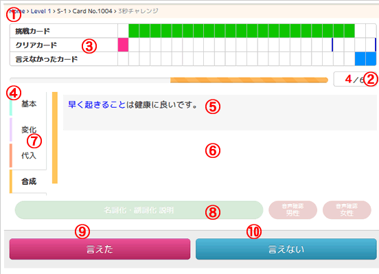 1秒を80%クリアにまでもっていくために何回、何十回と繰り返すことになり、ゲーム感覚でいつの間にか、その英文が口をついて出るようになるのがとてもいいところだと思います。