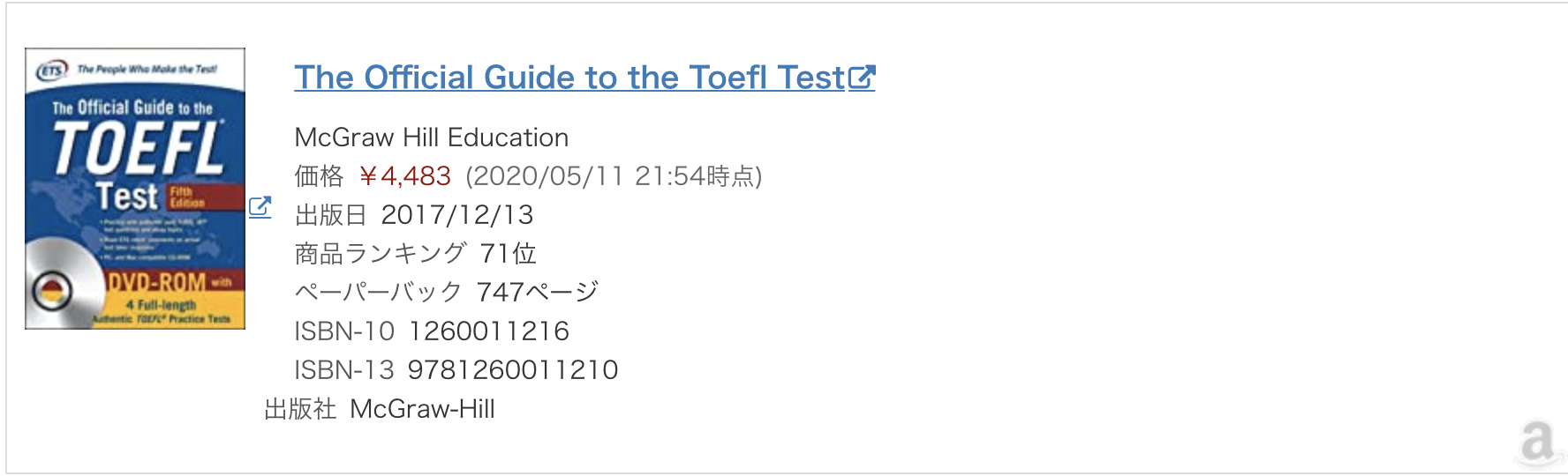 The Official Guide to the TOEFL Testは、TOEFLテストを作成しているETSの公式TOEFL参考書です。