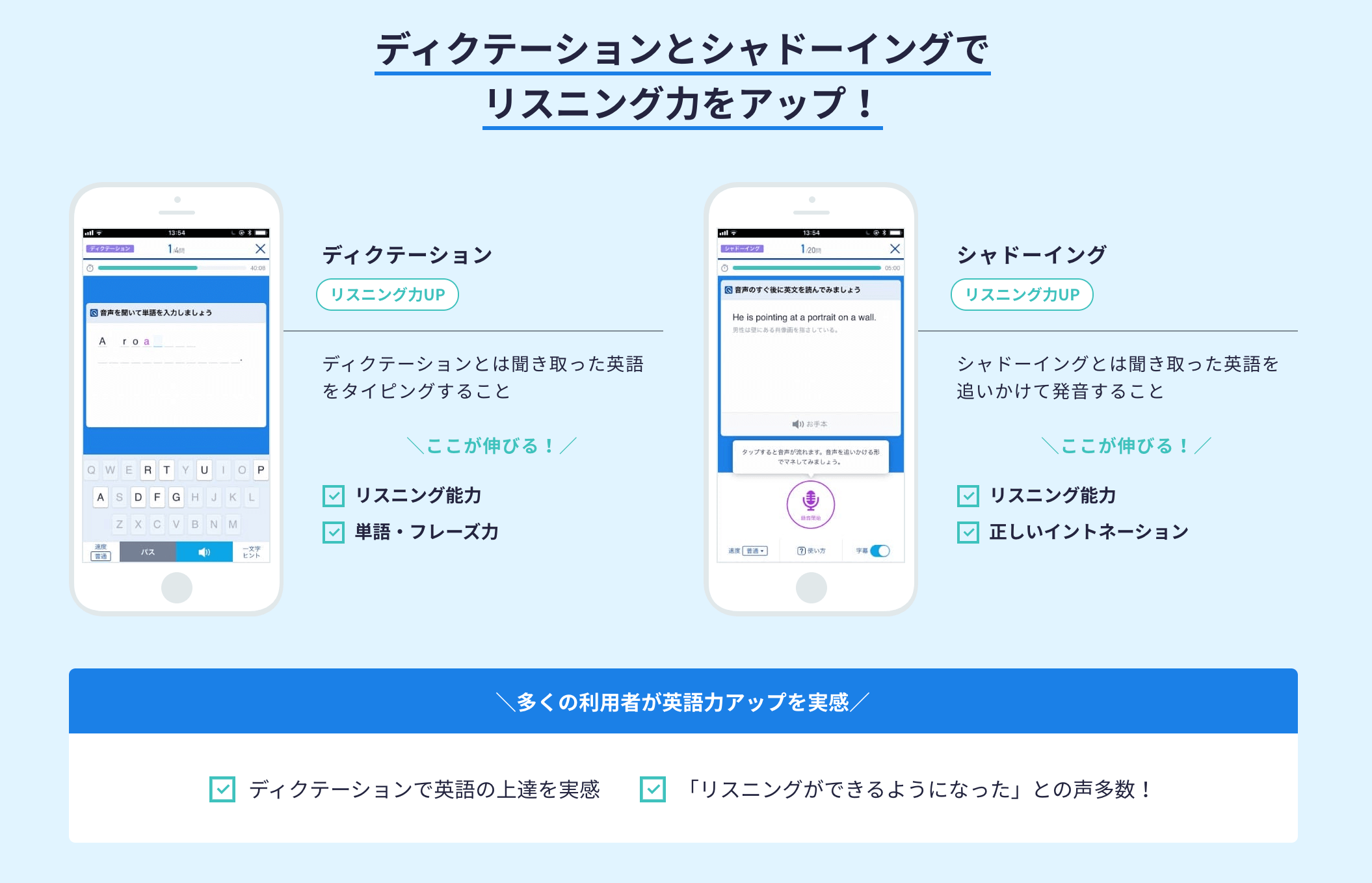 リスニング力をあげるディクテーションとシャドーイングまでアプリでできるように。