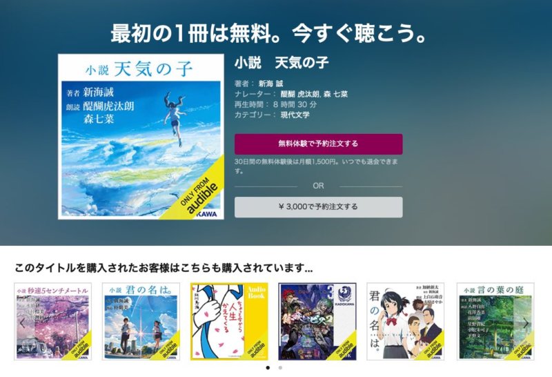 そして実はこのキクタンシリーズのオーディオブック版は「audible」と言うサービスを使えば無料で入手可能です。