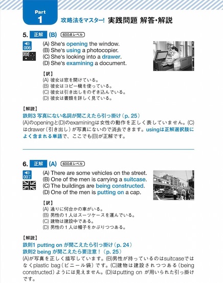 特徴としては、「速解ポイント」という問題を速く解くコツが紹介されている点。TOEICハックとでも言える知識がサクッと身につくのは本書ならでは。